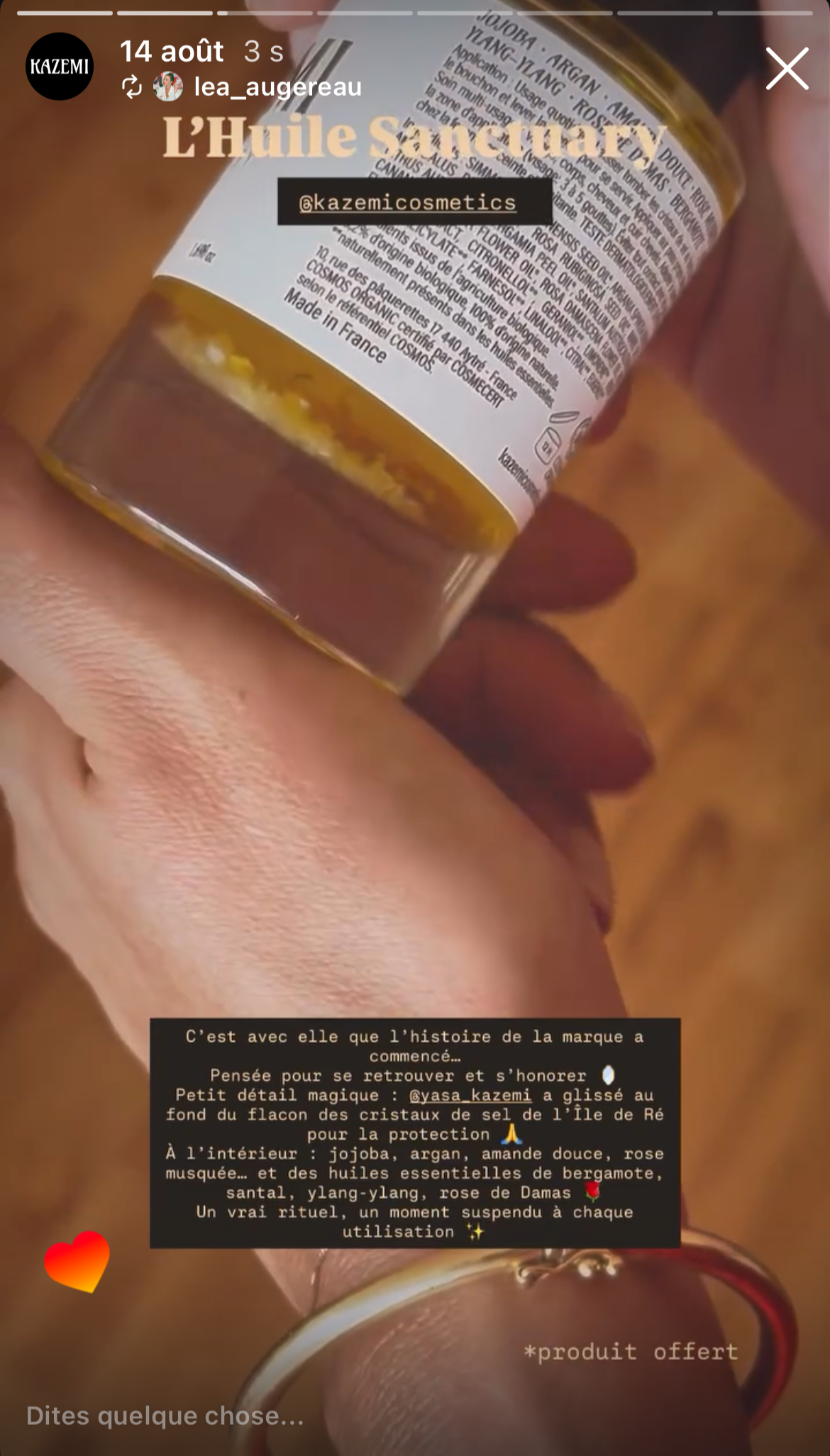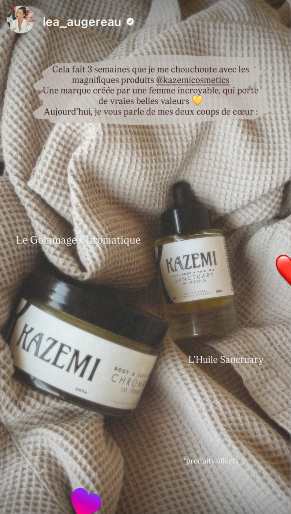"For three weeks I have been pampering myself with the magnificent KAZEMI products. A brand created by an incredible woman, who carries real values.